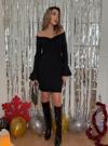 Kadın Yolbaşı özel Uzun Kollu çapraz Derin Dekolte Detaylı Ithal Krep Kısa Elbise