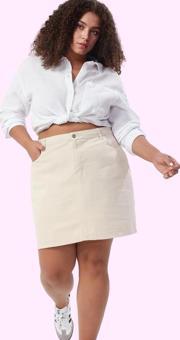 Eteğin %100 pamuklu yapısı, nefes alabilir ve yumuşak bir his sunar. Rigid dokuma tipi ise eteğe dayanıklılık kazandırır. Astarsız tasarımı, yaz sıcağında bile ferahlık sağlar. Yüksek bel yapısı, belinizi ince gösterirken, A-line silüeti de bacaklarınızı olduğundan uzun gösterir. Düğme ve fermuarlı kapatma sistemi ise eteği kolayca giyip çıkarmanızı sağlar. Büyük beden seçenekleriyle her bedene uygun bir seçenek sunar.