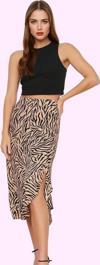 Moda Büyük Beden Yırtmaçlı Animal Desen Günlük Midi Boy Dokuma Yırtmaçlı Viskon Etek - Image 1