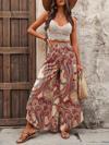 Kadın Yüksek Bel Beli Lastikli Desenli Geniş Paçalı Süprem Pantolon
