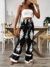 Kadın Yüksek Bel Büzgülü Etnik Desen Baskılı Süprem Pantolon