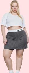 Dokuma kumaş yapısı sayesinde kırışmaya karşı dayanıklı olan bu etek, pratik kullanımıyla da dikkat çekiyor. Yüksek bel tasarımı, vücut hatlarınızı ön plana çıkarırken, rahat kesimi ile gün boyu hareket özgürlüğünüzü kısıtlamıyor. Çizgili deseni, modern ve şık bir görünüm sunarken, gri rengi her zevke hitap ediyor. Cepsiz tasarımıyla minimal bir şıklık yakalayan bu etek, çeşitli kombinasyonlarla tarzınızı yansıtmanıza olanak tanıyor.