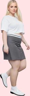 Yaz aylarının vazgeçilmezi, rahat ve şık bir şort etek arıyorsanız, doğru yerdesiniz! Bu yüksek bel, gri çizgili şort etek, gün boyu süren konforu ve şıklığı bir araya getiriyor. 65% polyester, 33% viskoz ve 2% elastan karışımından üretilen kumaşı, nefes alabilir ve yumuşak yapısıyla teninizde mükemmel bir his bırakıyor. Dar paçası ve mini boyu ile yaz sıcağında serin ve özgür hissetmenizi sağlayacak olan bu etek, her türlü kombinle uyum sağlıyor.