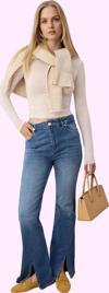 Yeni sezonun en trend parçası olan bu yüksek bel flare jean ile stilinize modern bir dokunuş katın. Mavi rengin zamansız şıklığını, rahat comfort dokuma ile birleştiren bu jean, günlük kombinlerinizin vazgeçilmezi olacak. Yüksek bel tasarımı, vücut hatlarınızı mükemmel bir şekilde ortaya koyarken, flare paça detayı ise hem şık hem de rahat bir görünüm sunuyor. %99 pamuk ve %1 elastan karışımından üretilen kumaşı, gün boyu süren konforu garantiliyor. İspanyol paçası ve yırtmaç detaylarıyla modern bir tarz yakalayın. Bu jean'i, düz bir tişört ve spor ayakkabılarla günlük bir şıklık elde etmek için tercih edebileceğiniz gibi, şık bir bluz ve topuklu ayakkabılarla daha iddialı bir görünüm yaratabilirsiniz. Günlük yaşamdan özel günlere kadar her anınızda size eşlik edecek olan bu jean, gardırobunuzdaki en sevdiğiniz parça olacak.