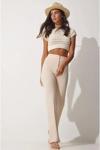Kadın Yüksek Bel Full Likralı Krep Kumaş Pantolon