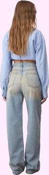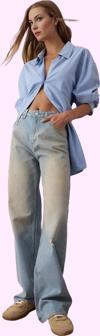 Bu sezonun en trend parçası olan yüksek bel geniş paça denim jean pantolonumuzla tanışın! %100 pamuk kumaştan üretilen bu pantolon, gün boyu konfor ve şıklığı bir arada sunuyor. Yüksek beli ve geniş paçası ile vücut tipinize mükemmel uyum sağlayarak sizi olduğunuzdan daha uzun ve ince gösterecek. Denim kumaşı, zamansız şıklığı ve dayanıklılığı ile ön plana çıkıyor. Hafif yırtık detayları ise modern ve trend bir görünüm katıyor. Günlük kombinlerinizin vazgeçilmezi olacak bu jean pantolonu, tişörtleriniz, bluzlarınız ve gömleklerinizle kolayca kombinleyebilirsiniz. Yaz aylarında sıcaktan bunalmadan rahatlıkla kullanabileceğiniz bu pantolon, aynı zamanda sonbahar ve ilkbahar aylarında da şıklık katacak. Regular boyu ile her vücut tipine uygun olan bu jean pantolon, gardrobunuzda mutlaka bulunması gereken bir parça. Kolay yıkama ve bakım özelliği ile uzun yıllar kullanabileceğiniz kaliteli bir üründür.