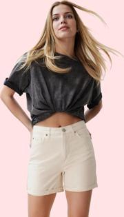 Yaz aylarının vazgeçilmezi olan bu şık ve rahat yüksek bel denim şort, günlük kombinlerinizin yıldızı olacak. %100 pamuk kumaştan üretilen şort, nefes alabilir yapısıyla gün boyu konfor sunuyor. Geniş paça tasarımı ve rahat kesimiyle hareket özgürlüğünüzü kısıtlamadan şık görünmenizi sağlar. Ekru rengi ile her türlü üst giysisiyle kolayca kombinlenebilen bu şort, casual tarzınızı tamamlayacak mükemmel bir parça. Yüksek bel tasarımı ile belinizi ince gösterirken, geniş paçası ile bacaklarınızı daha uzun gösterme avantajı sağlar. Kemersiz tasarımıyla pratiklik sunar. City short kalıbıyla her vücut tipine uyum sağlayan şort, yazın sıcak günlerinde serin ve şık kalmanızı sağlar. Makinede yıkanabilir özelliği ile pratik bir temizlik sunar.