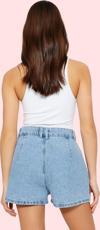 Bu yüksek bel, geniş paça denim şort 36-42 beden aralığında mevcuttur. Kısa boyu, yaz aylarında serin ve rahat kalmanızı sağlar. Şortun mavi rengi, çeşitli kıyafetlerle kolayca kombinlenebilir. Günlük kullanımdan gece dışarı çıkışlarına kadar, bu şort her fırsata uygundur. Plajda, alışverişte ya da arkadaşlarınızla buluşmada rahatlıkla giyebilirsiniz.