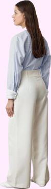 Zarif ve modern tasarımıyla dikkat çeken bu kadın pantolonu, iş hayatınızda ve günlük kombinlerinizde şıklığı yakalamanızı sağlayacak. Yüksek bel detaylı, geniş paça kesim ve düz desen ile mükemmel bir uyum sunar. Finike dokuma kumaştan üretilen pantolon, rahatlığı ve şıklığı bir araya getiriyor. Nefes alabilen yapısıyla gün boyu konfor sağlar. Kaliteli kumaşı sayesinde uzun süreli kullanım imkanı sunarken, kolay temizliği ve bakımıyla da zamandan tasarruf etmenizi sağlar. İş görüşmelerinde, ofis ortamında veya arkadaşlarınızla bir araya geldiğiniz her an stilinizi tamamlayacak. Beyaz rengi ile her türlü üst giysiyle kolayca kombinlenebilir. Hem şıklığı hem de konforu arayan kadınlar için ideal bir seçim.