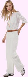 Yaz aylarının vazgeçilmezi, şık ve rahat beyaz yüksek bel geniş paça jean pantolonumuzla tanışın! %100 pamuk denim kumaştan üretilen bu pantolon, gün boyu konfor sunarken, geniş paça tasarımıyla da modern ve şık bir görünüm yaratıyor. Yüksek beli sayesinde kusursuz bir silüet oluştururken, düz deseni her tarza uyum sağlıyor. Rahatlığı ve şıklığı bir arada sunan bu pantolon, günlük kombinlerinizin baş tacı olacak. Nefes alan yapısıyla yaz sıcağında bile rahat hissetmenizi sağlayacak olan pantolonumuz, farklı üst giyim parçalarıyla kolayca kombinlenebilir. Özellikle tişörtler, bluzlar ve şık gömleklerle harika bir uyum yakalıyor. Hem günlük hayatta hem de özel günlerde kullanabileceğiniz bu pantolon, gardırobunuzun en çok kullanılan parçası olmaya aday. Makinede yıkanabilir özelliğiyle de pratik kullanım sunuyor. Yaz aylarında özgür ve şık hissetmek isteyen kadınlar için ideal bir seçenek.