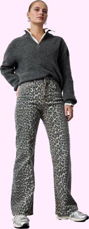 Kadın Yüksek Bel Geniş Paça Leopar Desenli Jean Pantolon Günlük Kombinler Kaliteli Malzeme