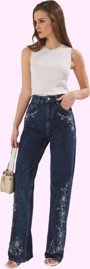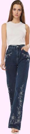 Günlük şıklığınıza yeni bir soluk getirecek olan bu yüksek bel geniş paça jean pantolon, %100 pamuk kumaşından üretilmiş olup, benzersiz rahatlığı ve şıklığı bir araya getiriyor. Mavi renkli denim kumaş üzerine işlenmiş zarif çiçek nakışları, pantolonunuza özgün bir tarz katıyor. Yüksek bel tasarımı, vücudunuzu saran ve sizi olduğunuzdan daha uzun gösteren bir silüet oluşturuyor. Geniş paça modeli ise hem modern hem de zamansız bir görünüm sunuyor. Bu pantolonu her mevsim rahatlıkla kullanabilir, farklı üstlerle kombinleyerek tarzınızı her ortama uygun hale getirebilirsiniz. Günlük kullanım için ideal olan bu pantolon, hareket özgürlüğü sağlayan geniş paçalarıyla tüm gün konfor sunuyor. Yüksek kaliteli pamuk kumaşın nefes alabilir yapısı ise gün boyu ferahlık hissetmenizi sağlıyor. Makinede kolayca yıkanabilen bu pantolon, uzun ömürlü kullanım için tasarlanmıştır.