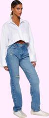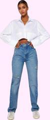 %100 pamuk kumaşı ile gün boyu konfor ve rahatlık sağlar. Yüksek bel tasarımı vücut hatlarınızı güzelleştirirken, geniş paça stili ise modern bir görünüm sunar. Mavi rengin zamansız şıklığını ve yırtık detayların cool tarzını bir araya getiren bu jean, farklı kombinasyonlar yapmanıza olanak tanır. Fermuarlı kapama sistemi pratik kullanım sağlar ve dayanıklı yapısı uzun yıllar boyunca kullanım imkanı sunar.