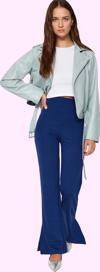 Şıklığı ve rahatlığı bir arada sunan haki renkli yüksek bel ispanyol paça pantolonumuz, günlük yaşamınızda stil sahibi olmanıza yardımcı olacak. İnterlok dokuma tipiyle üretilen bu pantolon, yumuşak ve esnek yapısıyla gün boyu konforlu bir kullanım deneyimi sunar. %72 viskoz, %24 polyester ve %4 elastan karışımı sayesinde nefes alabilir ve vücut hatlarınıza mükemmel uyum sağlar. Yüksek beli ve flare kalıbıyla modern ve feminen bir görünüm yaratırken, yanlardaki yırtmaç detayları ise şıklığınıza hareketlilik katar. İlkbahar ve sonbahar aylarında rahatlıkla kullanabileceğiniz bu pantolon, günlük kombinlerinizin vazgeçilmezi olacak. İster spor ayakkabılarınızla sportif bir görünüm yaratın, ister topuklu ayakkabılarla şık bir stil oluşturun, bu pantolon her durumda size mükemmel bir uyum sağlayacak.