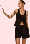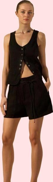 Ersefa Kadın Yüksek Bel Keten Mini Şort; Geniş Paça; Rigid Dokuma; Yazlık Yaz Aylarının Vazgeçilmezi