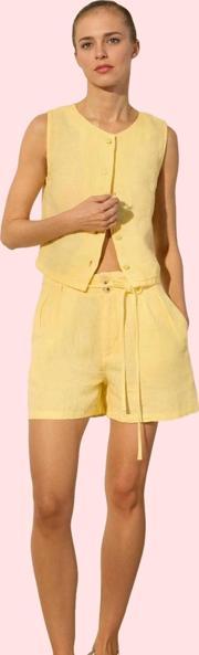 Sıcak yaz günlerinde hem şık hem de rahat olmak mı istiyorsunuz? O zaman bu sarı keten mini şort tam size göre! Yüksek bel tasarımı ve geniş paçası ile son derece rahat ve şık bir görünüm sunuyor. %100 keten kumaşından üretilen şort, nefes alabilir özelliği sayesinde gün boyu ferahlık sağlar. Rigid dokuma tipi ise şortun formunu ve kalitesini uzun süre korumasını garanti eder. Beli bağlama detayı, şorta şık bir dokunuş katarken, kısa boyu da hareket özgürlüğünüzü kısıtlamaz.