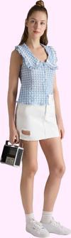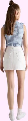 Yaz aylarının vazgeçilmez parçası olan bu beyaz mini denim etek, şıklığı ve rahatlığı bir araya getiriyor. A-line kalıbıyla her vücut tipine mükemmel uyum sağlayan etek, %100 pamuk kumaşından üretilmiştir. Nefes alabilen ve yumuşak yapısıyla gün boyu konfor sunan etek, yırtık detaylarıyla modern ve cool bir tarz oluşturur. Paçası kesikli tasarımıyla bacaklarınızı daha uzun ve ince gösterirken, yüksek beliyle belinizi ince ve uzun gösterecektir. Günlük kombinlerinizin yanı sıra, plaj şıklığına da uyum sağlar. Sadece yaz için değil, ilık havalarda da rahatlıkla tercih edebilirsiniz. Beyaz rengiyle her kıyafetle kolayca kombinlenebilir. Hem şık bir akşam yemeğinde, hem de arkadaşlarınızla buluşmada rahatlıkla giyebilirsiniz.