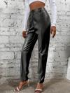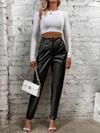 Kadın Yüksek Bel önden Düğmeli Deri Pantolon