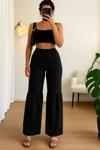 Kadın Yüksek Bel Parça Detay Bol Paça Pantolon