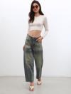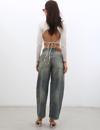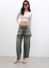 Kaliteli denim kumaştan üretilmiştir. Tok bir kumaşı vardır. Geniş kesime sahip rahat bir modeldir. Yüksek beldir. Fermuarlı modeldir. Bedenler arası 2 cm değişmektedir. M beden ölçüleri bel 43 cm, basen 58 cm, baldır 37 cm, paça genişliği 25 cm, iç bacak 72cm, boy uzunluğu 100 cmdir.