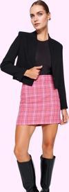 Zarif ve modern görünümün anahtar parçası olan bu pembe ekose mini etek, gardrobunuzda kendine özel bir yer edinecek. Yüksek bel tasarımı ve kalem kalıbı ile vücut hatlarınızı kusursuz bir şekilde sergilemenizi sağlar. Tüvit kumaşın kalitesi ve dayanıklılığı, eteğe uzun ömürlü bir kullanım sunarken, ekose deseninin şıklığı ile her ortamda göz alıcı görünmenizi garanti eder. Şıklığı ve konforu bir arada sunan bu etek, hem iş hayatınızda hem de günlük yaşamınızda tarzınızı yansıtmanıza yardımcı olur.