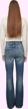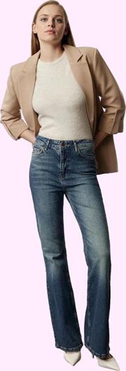 Yeni sezonun en trend parçası olan bu yüksek bel, uzun boy flare jean pantolon, günlük şıklığınıza modern bir dokunuş katacak. %99 pamuktan üretilen kumaş yapısıyla gün boyu konfor sunarken, mavi rengi ve soluk efekt detaylarıyla vintage bir tarz yakalamanızı sağlar. Rahat ve şık kesimi, her vücut tipine uyum sağlayarak mükemmel bir oturuş sunuyor. İspanyol paçası ile modern ve feminen bir görünüm elde ederken, kemersiz tasarımı ile kombinlerinizi daha özgür bir şekilde tamamlayabilirsiniz. Cepsiz tasarımı, minimal bir şıklık sunarken, düz ve sade yapısı ile farklı üst giyim parçalarıyla kolayca kombinlenebilir. Flare kalıbı ile bacak boyunuzu uzatarak daha uzun ve ince bir görünüm elde edebilirsiniz. Yıkama talimatlarına uygun şekilde bakımı yapıldığında, uzun yıllar boyunca şıklığınızı koruyacak kaliteli bir yapıya sahiptir.Günlük hayatta, iş hayatında veya özel davetlerde stilinize farklılık katmak için ideal bir seçimdir. Bu jean pantolonu, basic bir tişört ve spor ayakkabı ile spor bir şıklık yakalayabilir veya şık bir bluz ve topuklu ayakkabı ile daha elegant bir kombin oluşturabilirsiniz.