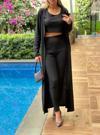 Asil Acar Home Kadın Yuvarlak Yaka Askılı Krop Bluz Yüksek Bel Tayt Ve Uzun Hırka şardonlu Kaşkorse üçlü Takım