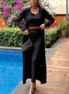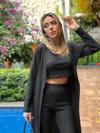 Kadın Yuvarlak Yaka Askılı Krop Bluz Yüksek Bel Tayt Ve Uzun Hırka şardonlu Kaşkorse üçlü Takım