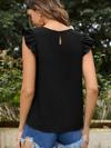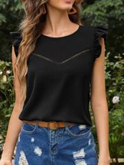 Kadın Yuvarlak Yaka Kolları Fırfırlı Krep Bluz