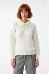 Ersefa Kadınlar İçin Ekru Casual Gömlek Yaka Saç Örgü Desenli Regular Triko Kazak Sonbahar Kış Kaliteli