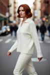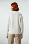 Ürün Özellikleri: Oversize kalıp, akrilik polyester yün materyal, düz desen, polo yaka, düşük kol, triko kumaş, ekru renk, baskısız tasarım.