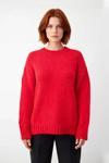 Bisiklet yaka tasarımı, boyun bölgesini nazikçe sararak ekstra koruma sağlarken, düşük kol yapısı modern ve rahat bir siluet çizer. Uzun kol boyu ve kalın dokusu, soğuk havaya karşı mükemmel bir bariyer oluşturur. Tek plaka dokuma tipi, ürünün sağlamlığını ve uzun ömürlülüğünü garanti ederken, triko kumaşının esnek yapısı giyim kolaylığı sunar. Bakım kolaylığı sağlayan T41 yıkama talimatı sayesinde, bu kazak formunu uzun süre koruyarak size eşlik eder. Bu triko, casual ve günlük kullanımlarınızda şıklığınızı ve konforunuzu tamamlar.
