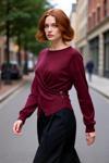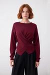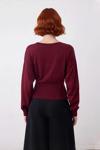 Ürün Özellikleri: Fitted kalıp, pamuk akrilik karışım materyal, düz desen, bisiklet yaka, standart kol, triko kumaş, bordo renk.