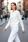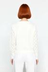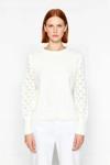 Ürün Özellikleri: Regular kalıp, akrilik materyal, ajurlu desen, bisiklet yaka, standart kol, triko kumaş, ekru renk.