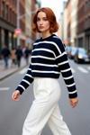 Kadınların günlük şıklığını tamamlamak üzere tasarlanan bu basic çizgili triko kazak, oversize kalıbıyla modern ve rahat bir duruş sergiler. Yüksek kaliteli akrilik materyali sayesinde kış, sonbahar ve ilkbahar aylarının serin günlerinde sizi sıcak tutarken, yumuşak dokusuyla gün boyu konfor sağlar. Bej zemin üzerine işlenmiş çizgili deseni, zamansız bir şıklık sunarak dolabınızın vazgeçilmezi olmaya adaydır. Bu crop boy kazak, cool & comfort personasını benimseyen kadınlar için ideal bir seçimdir.