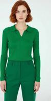 Verde Blanco Balıkçı Yaka Örme Crop Kazak
