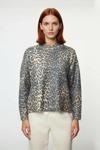 Ürün Özellikleri: Oversize kalıp, akrilik - polyester materyal, leopar desen, bisiklet yaka, düşük kol, triko kumaş, leopar desenli renk.