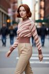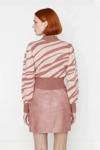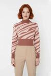 Ersefa Kadınlara Özel Pembe Zebra Desenli Dik Yaka Uzun Kollu Crop Triko Kazak Kış Şıklığı İçin Kaliteli