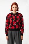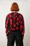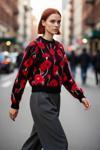 Ürün Özellikleri: Regular kalıp, akrilik polyester materyal, çiçekli desen, bisiklet yaka, düşük kol, triko kumaş, siyah kırmızı renk, kalınlık kalın, boy regular, dokuma pike.