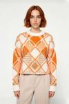 Kadınların gardırobuna şıklık ve konfor katacak bu oversize triko kazak, modern baklava deseniyle dikkat çekiyor. Geniş kalıbı sayesinde gün boyu rahat bir kullanım sunarken, ekru, turuncu ve kahve tonlarındaki renk geçişleriyle her stile uyum sağlar. %80 Akrilik ve %20 Polyester karışımı materyali, ürüne yumuşak bir dokunuş ve orta kalınlıkta ideal bir sıcaklık kazandırır. Cool & comfort persona ile casual ve günlük kombinlerinizin vazgeçilmezi olmaya adaydır.