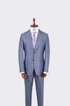Erkek Mavi Slim Fit / Dar Kalıp Mono Yaka Takım Elbise - Image 1