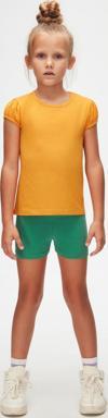Kadmium Sarı Basic Kız Çocuk Sıfır Yaka Karpuz Kol Tişört