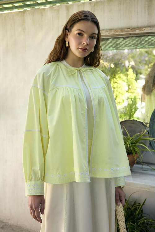 Kadriye Baştürk Lova Nakışlı Bağlamalı Ceket Limon Sarısı