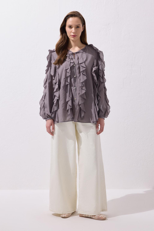- Fırfırlı rahat kesim gömlek.