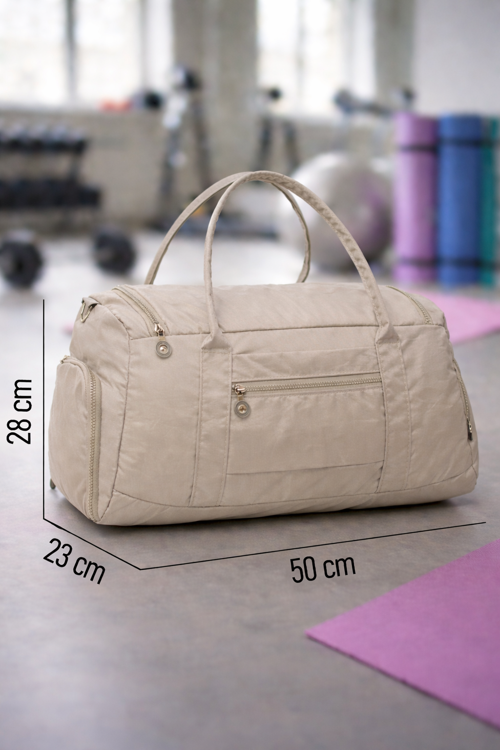 Kaff Bej Krinkıl Kumaş Ayakkabı Bölmeli 0818 Önü Cepli Su Geçirmez Omuz Askılı Spor Ve Seyahat Çantası