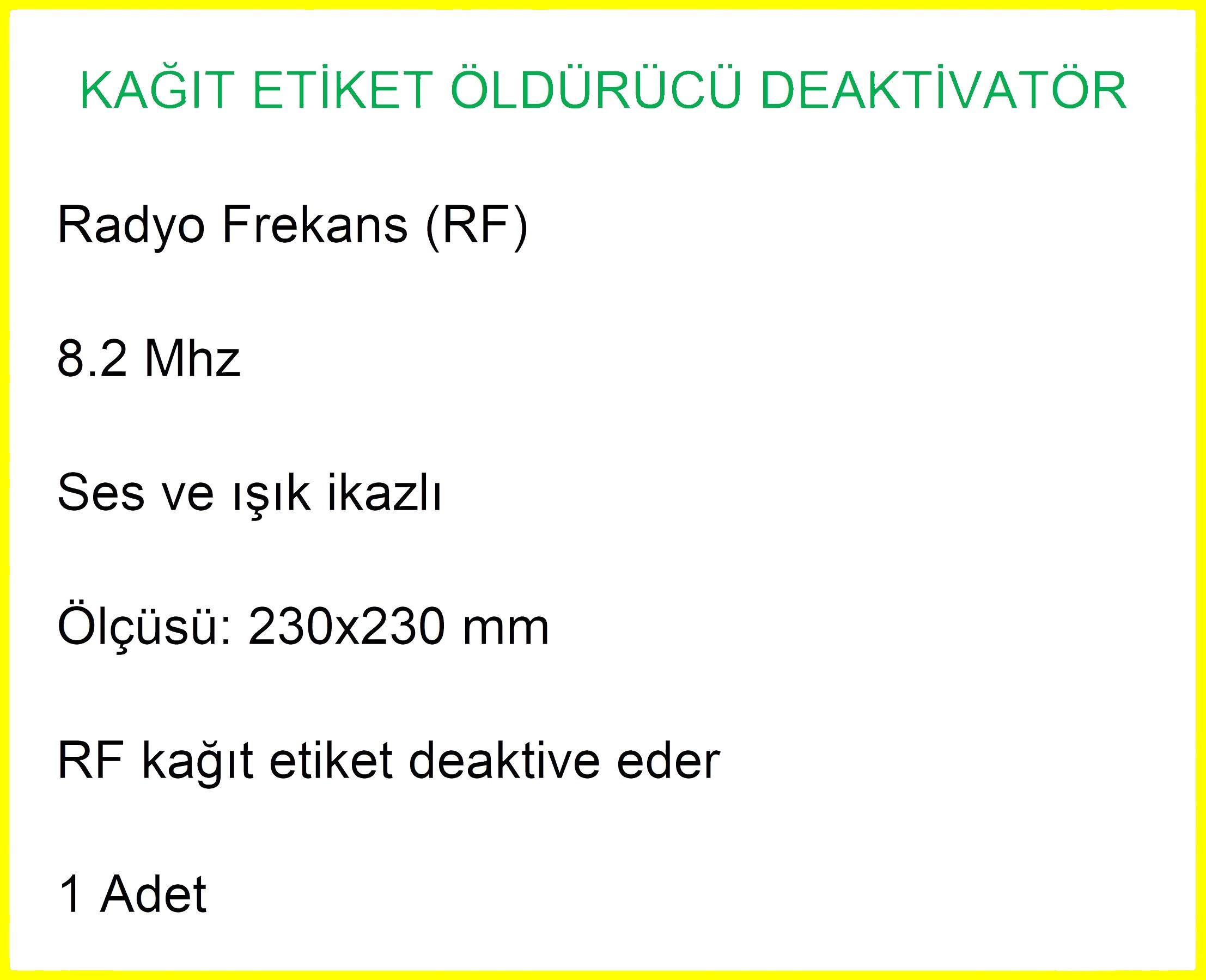 Secadoor RF Kâğıt Etiket Öldürücü Deaktivatör; ABS plastik gövde ve güçlü bir manyetik alan üreten özel bir devre sisteminden üretilmiştir. 8,2 Mhz frekansında çalışır. Masaüstü portatif olarak ya da gömme olarak kullanılabilir. Ses ve ışık ikazlı olan bu etiket öldürücü deaktivatör, alarm etiketleri belli bir yakınlıkta üstünden geçtiği zaman, kasiyere hem sesli hem de ışıklı olarak ikaz ederek işlemi tamamladığını belirtir. Bu sayede kasiyerler daha hızlı ve ergonomik kullanıma ulaşırlar. Aynı zamanda öldürülmeden gönderilecek etiketlerin kapıda alarm vermesi ile yanlış anlaşmalar olmayacaktır. Siyah renk ile sizler için sunulmuştur. Secadoor radyo frekans kâğıt etiket öldürücü deaktivatörü gönül rahatlığıyla tercih edebilirsiniz.
