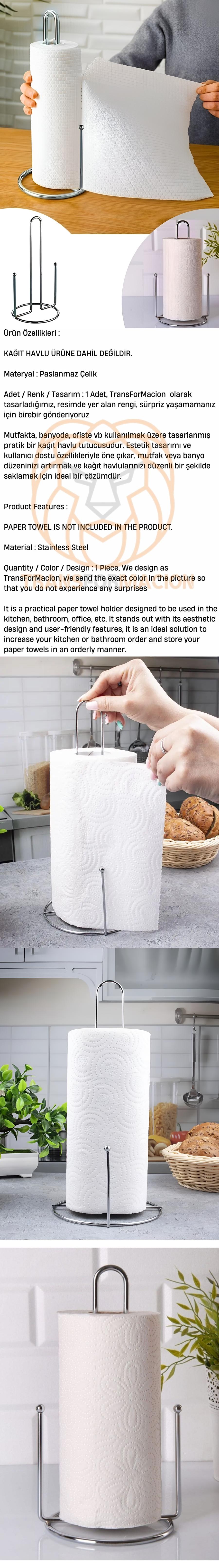 Mutfakta, banyoda, ofiste vb kullanılmak üzere tasarlanmış pratik bir kağıt havlu tutucusudur. Estetik tasarımı ve kullanıcı dostu özellikleriyle öne çıkar, mutfak veya banyo düzeninizi artırmak ve kağıt havlularınızı düzenli bir şekilde saklamak için ideal bir çözümdür.
