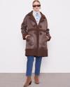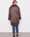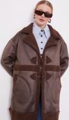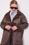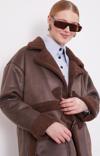 Kahve Düğme Kapamalı Yün Astarlı Suni Deri Kaban