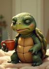 Kahve İçen Kaplumbağa Desenli Ahşap Tablo 50cmX 70cm