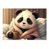 Kahve İçen Panda Figürü Dekoratif Mdf Tablo 50cmX 70cm